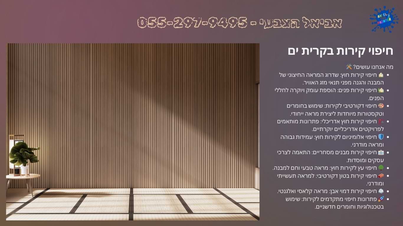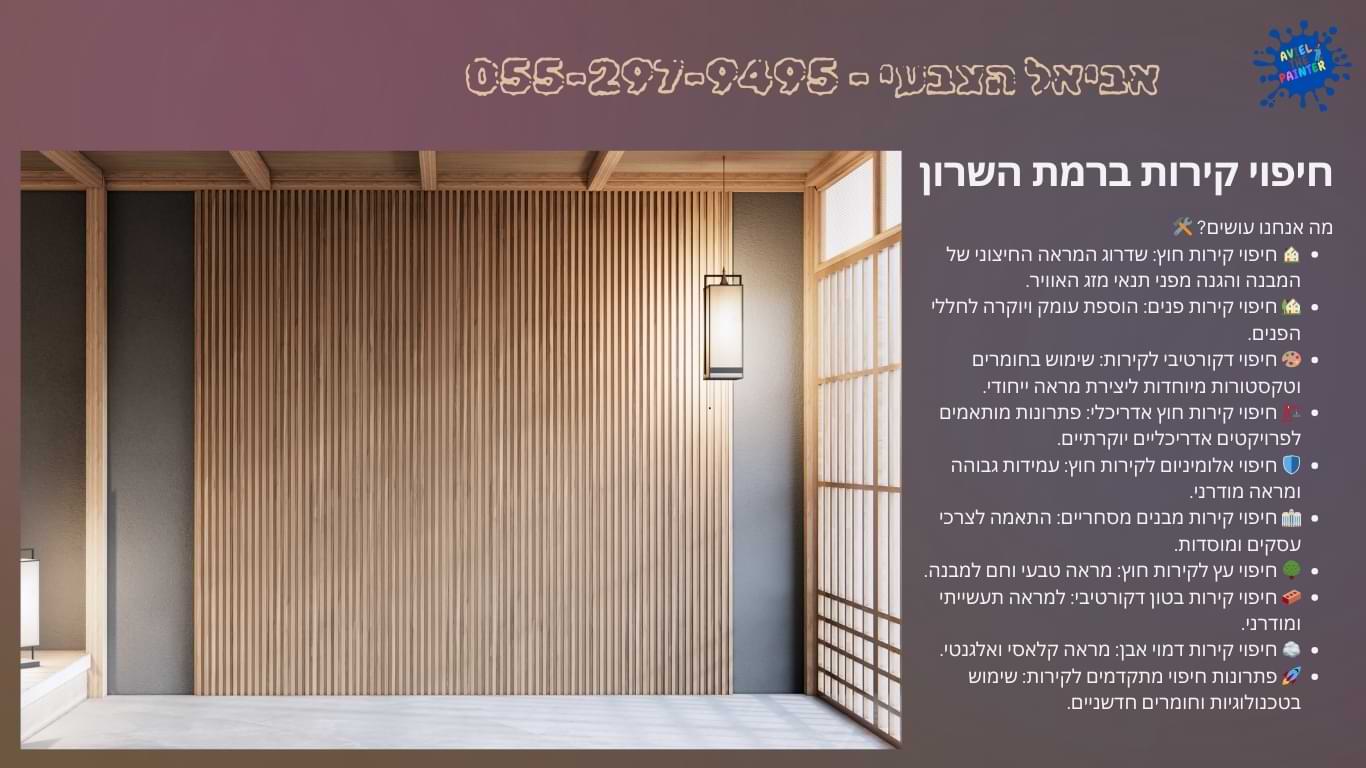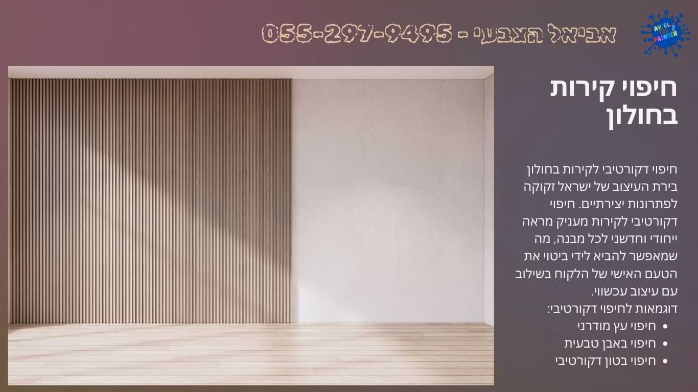 קבלן צבע עם נסיון של 22 שנים, ביצוע כל עבודות הצבע, עבודות פנים וחוץ, שפכטל וגמר גבס 055-297-9495
